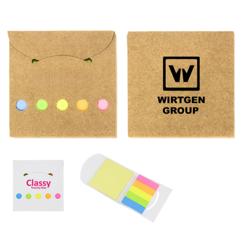 Customize with your logo or message using standard silkscreen colors in a 2" W x 0.5" H imprint area. Includes 120 sticky notes in 5 vibrant neon colors, packaged in a compact kraft paper pocket case with a tuck-in flap closure. The square-shaped design is perfect for desktop use or on-the-go organization. Ideal for promotional events, corporate giveaways, or business marketing campaigns. A practical and colorful way to keep your brand visible.