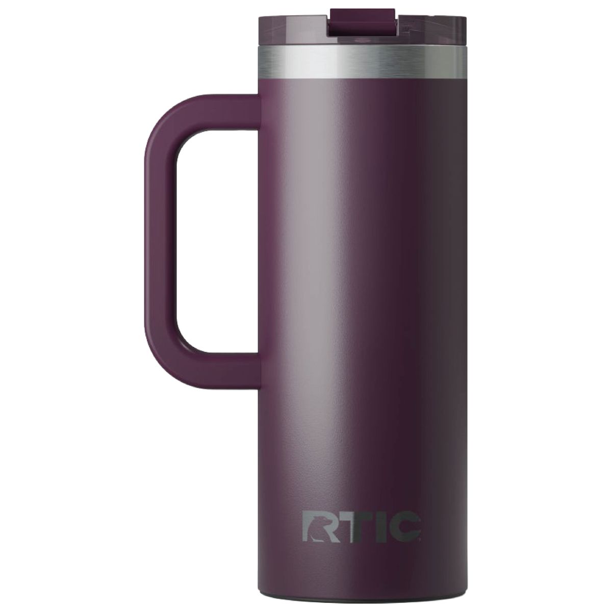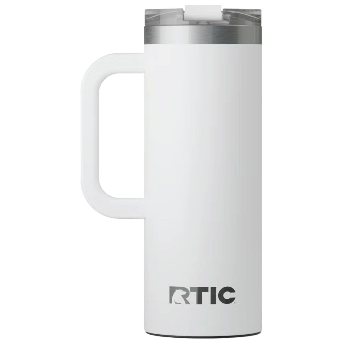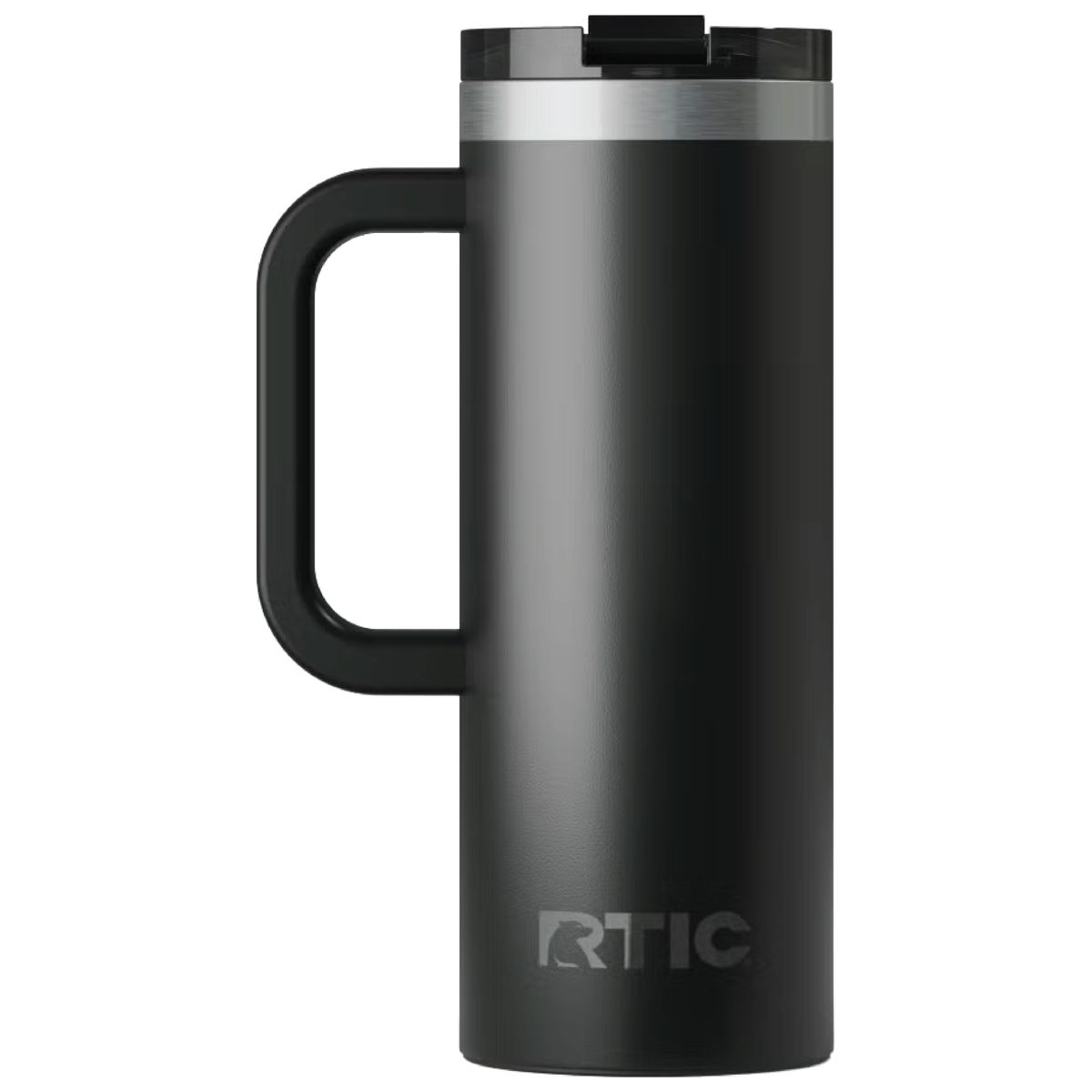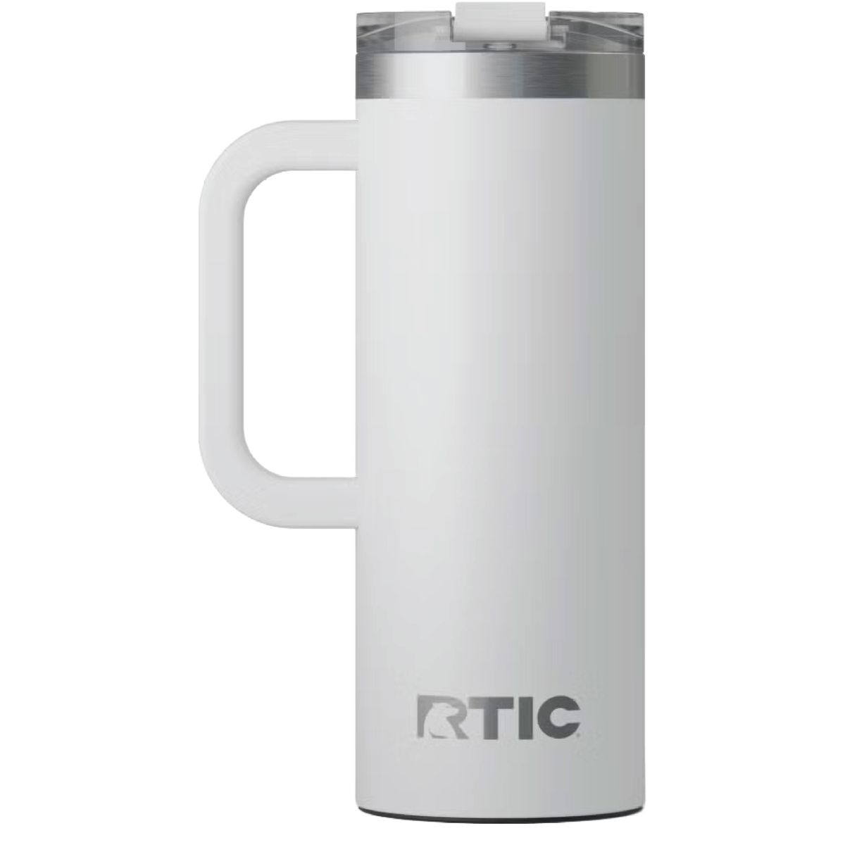 Get a handle on your morning coffee using the RTIC 20oz Travel Mug. It features a slim design with an integrated handle that lets the mug fit nicely into most cup holders. The mug is made from stainless steel that is double-wall vacuum-insulated, which allows the mug to keep your drink hot up to 6 hours or cold up to 24 hours. The ceramic lining prevents metallic taste and odor in your beverages. The screw on, flip-top closure resists spills. Laser engraved leaving a stainless steel show-through imprint. Individually packaged.
