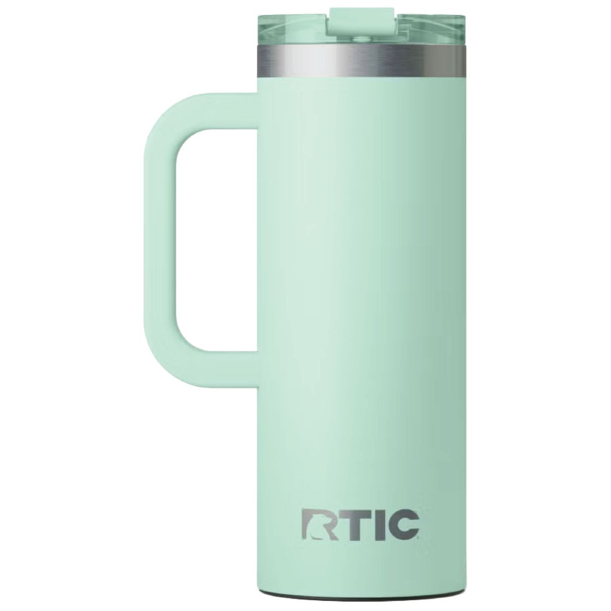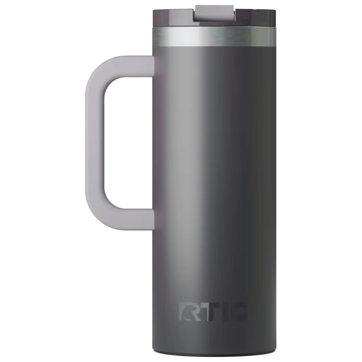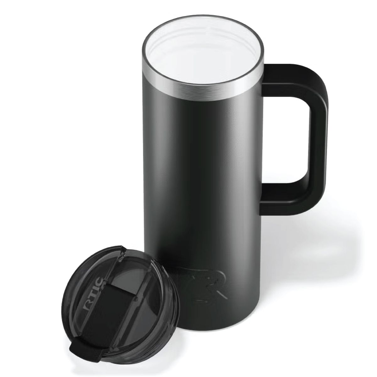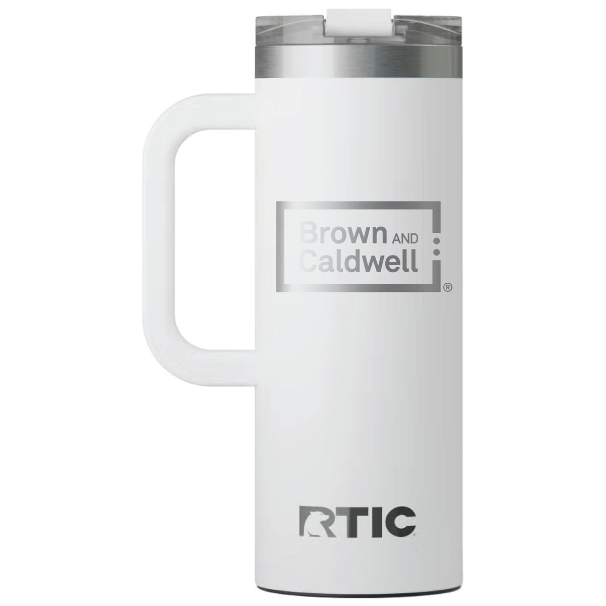 Get a handle on your morning coffee using the RTIC 20oz Travel Mug. It features a slim design with an integrated handle that lets the mug fit nicely into most cup holders. The mug is made from stainless steel that is double-wall vacuum-insulated, which allows the mug to keep your drink hot up to 6 hours or cold up to 24 hours. The ceramic lining prevents metallic taste and odor in your beverages. The screw on, flip-top closure resists spills. Laser engraved leaving a stainless steel show-through imprint. Individually packaged.