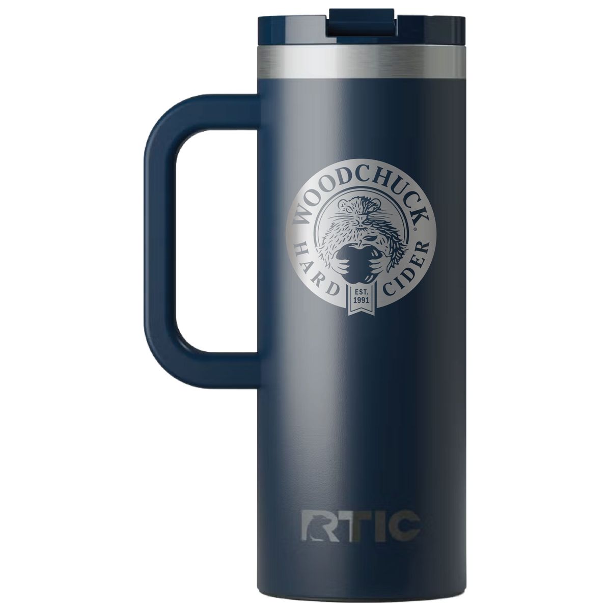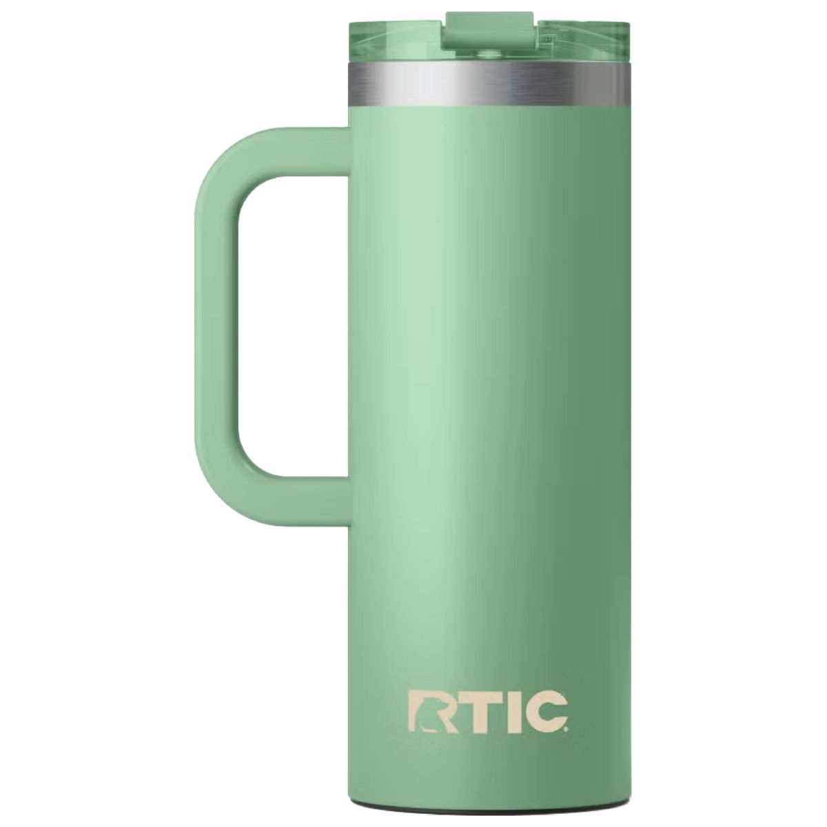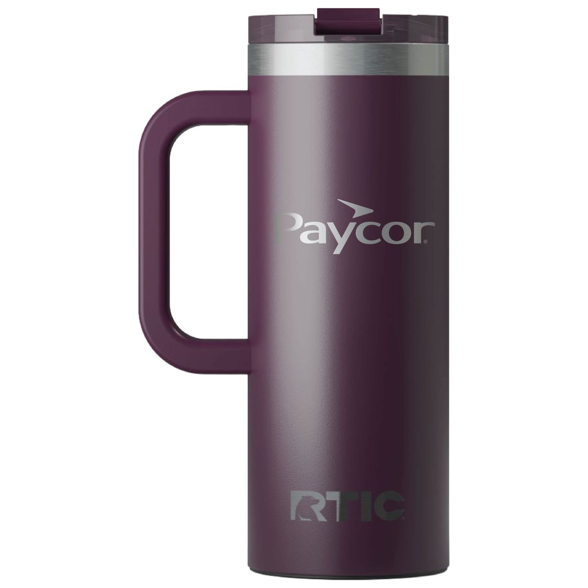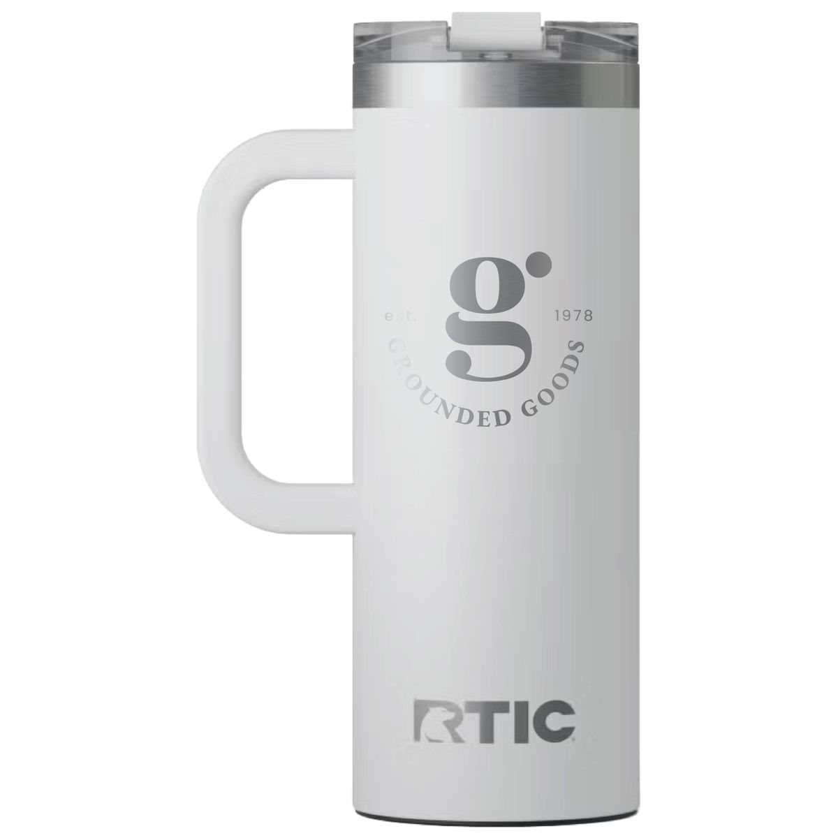 Get a handle on your morning coffee using the RTIC 20oz Travel Mug. It features a slim design with an integrated handle that lets the mug fit nicely into most cup holders. The mug is made from stainless steel that is double-wall vacuum-insulated, which allows the mug to keep your drink hot up to 6 hours or cold up to 24 hours. The ceramic lining prevents metallic taste and odor in your beverages. The screw on, flip-top closure resists spills. Laser engraved leaving a stainless steel show-through imprint. Individually packaged.