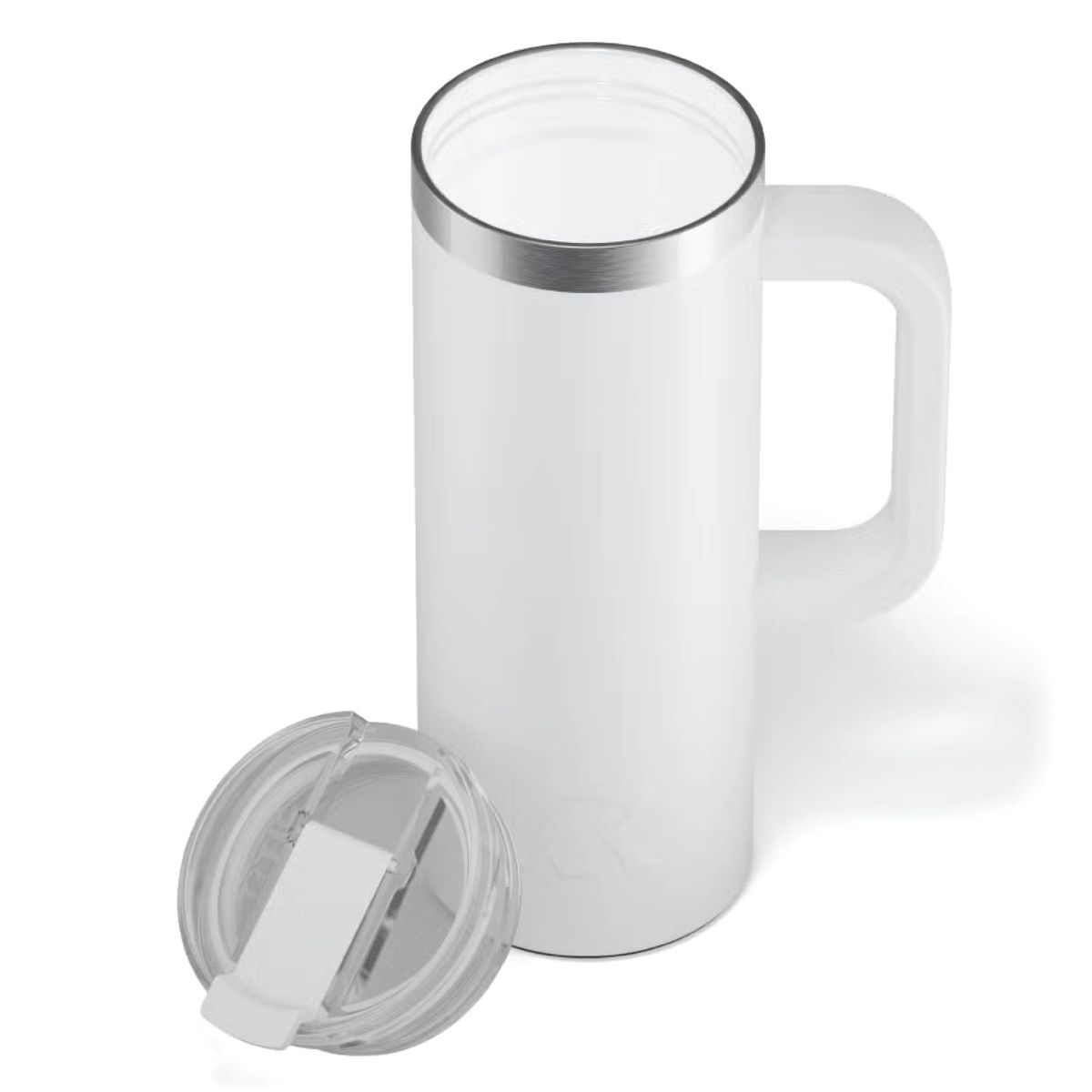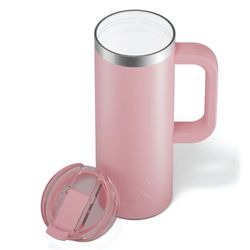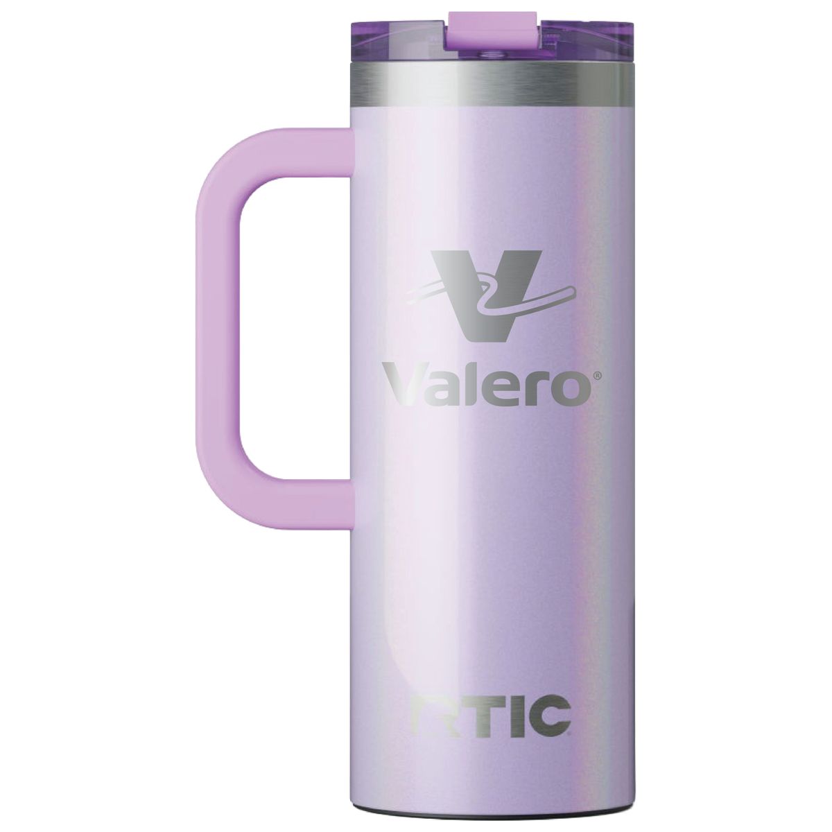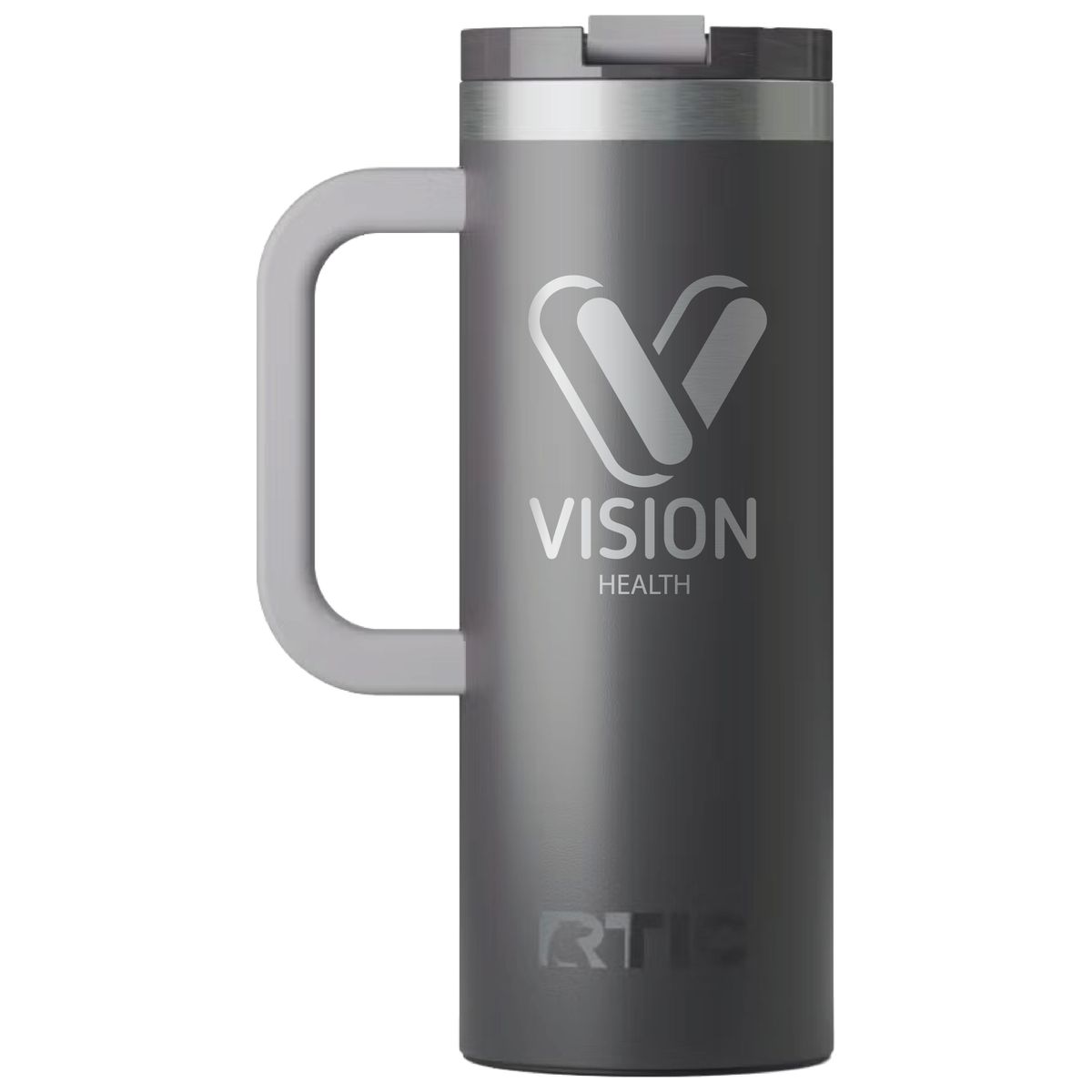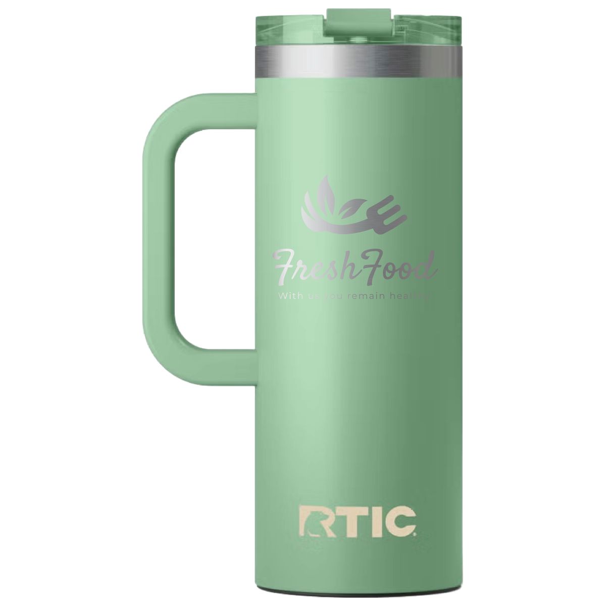 Get a handle on your morning coffee using the RTIC 20oz Travel Mug. It features a slim design with an integrated handle that lets the mug fit nicely into most cup holders. The mug is made from stainless steel that is double-wall vacuum-insulated, which allows the mug to keep your drink hot up to 6 hours or cold up to 24 hours. The ceramic lining prevents metallic taste and odor in your beverages. The screw on, flip-top closure resists spills. Laser engraved leaving a stainless steel show-through imprint. Individually packaged.