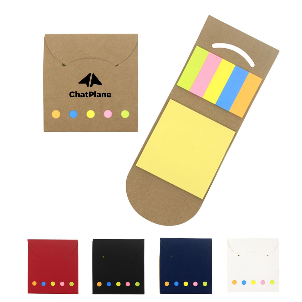 The product includes sticky notes and page flags in 5 vibrant colors, packaged in a compact pocket case with tuck-in closure. Could be for desktop or on-the-go use. Perfect for promotional events, corporate giveaways, or business marketing campaigns.