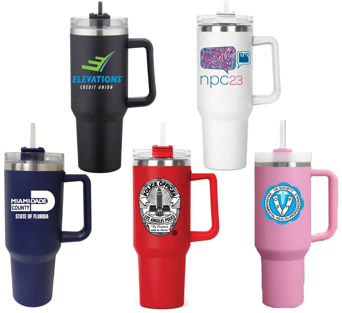 Double wall stainless steel inside and out. Vacuum insulation can keep the drinks hot or cold up to 9 hours or more. The screw-on lid is transparent so you can see how much drinks inside. It comes with a drinking straw for cold drinks. This high end item is great for home or travel. Bottom part fits into the car cup holder. Large 40 Oz. size. 3"Wx3"H imprint area on the powder coating lets your message stand out sharp. Your friends and customers will love this tumbler with your advertising messages. Great for any occasions. Hand wash only.